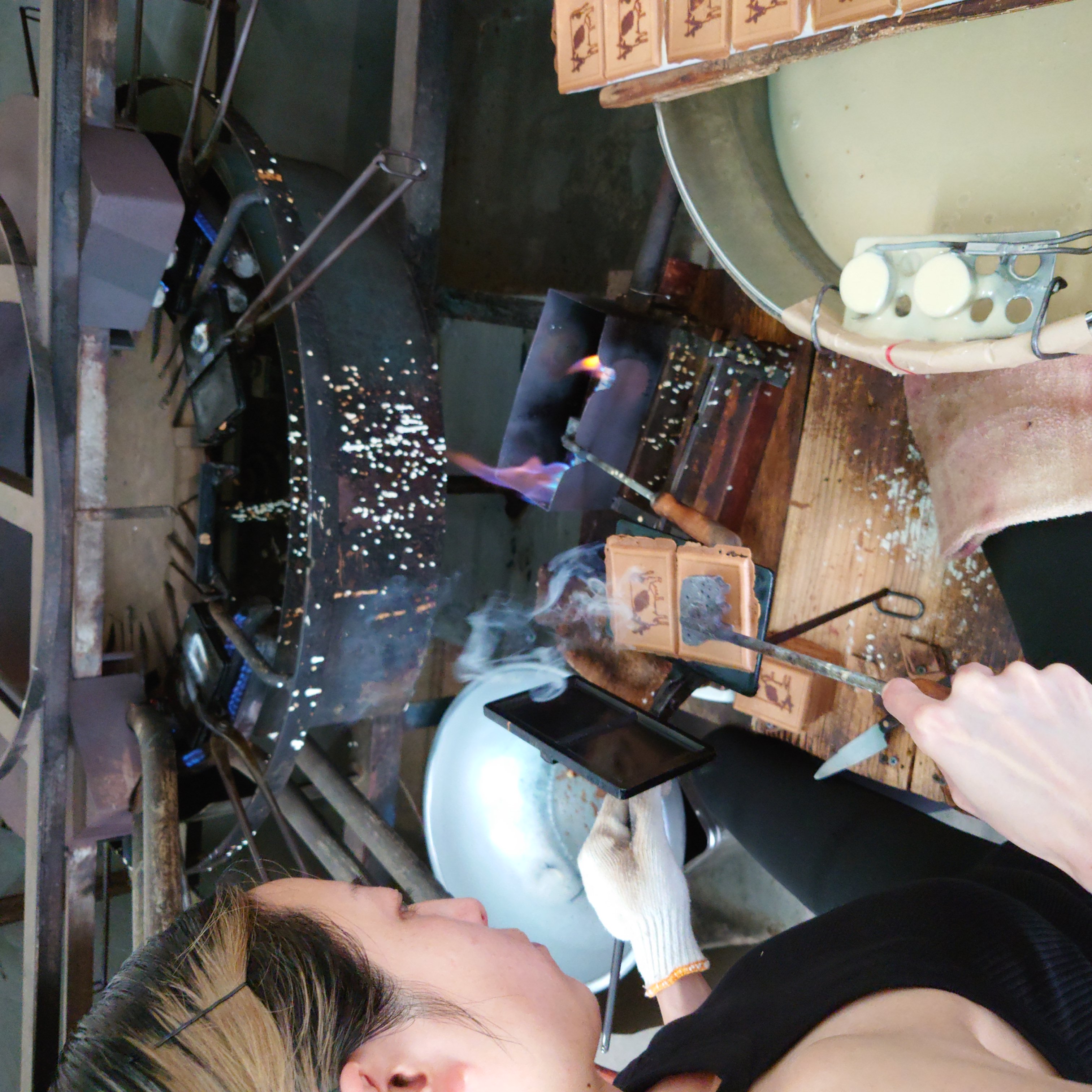 当店では1955年から牛乳煎餅の製造に携わり、今も手焼きにこだわり1枚1枚丁寧に焼き上げています。